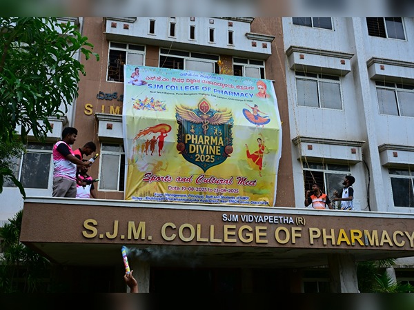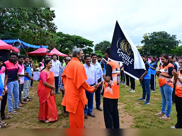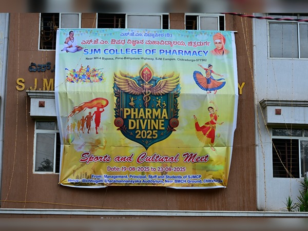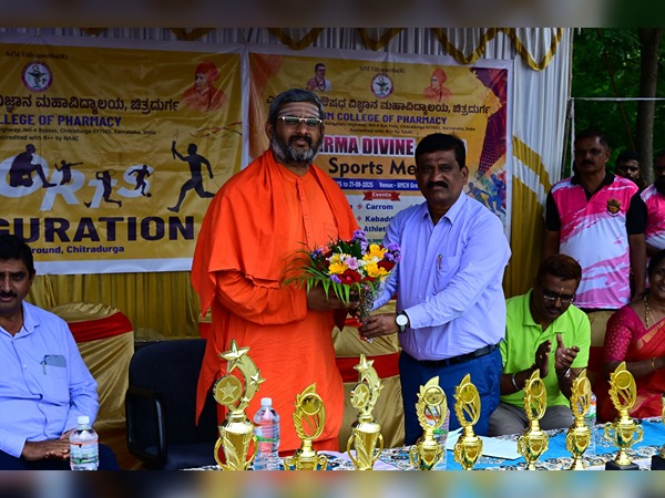 Pharma Divine 2025, sports and cultural meet, Banner launch with fashmob and sports inauguration by Dr. Basavakumara Swamiji, Member Administrative Committe. SJM Vidyapeetha, Chitradurga